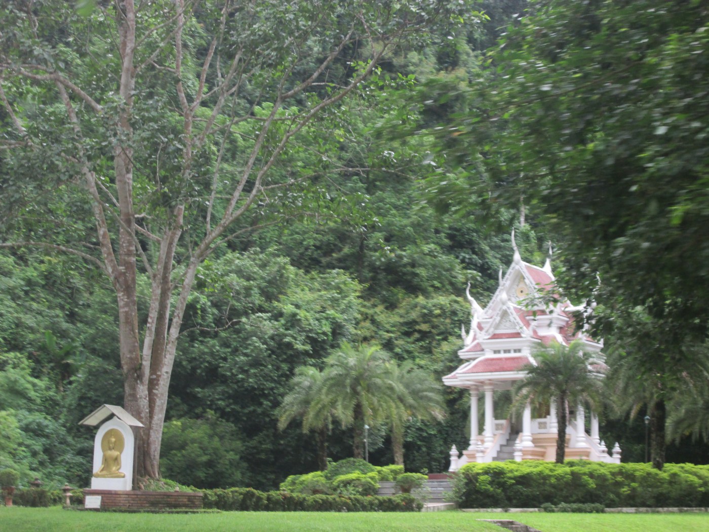 M’n linker voet slaapt. Ik zit al een uur in een meest oncomfortabele houding op de stenenvloer in één van de vele ruimtes die tempel Bang Phra rijk is. Het is zeer onbeleefd om naar iemand te wijzen met je voeten, dus zijn we genoodzaakt om onze benen in (voor ons toch) onmogelijke bochten te wringen.