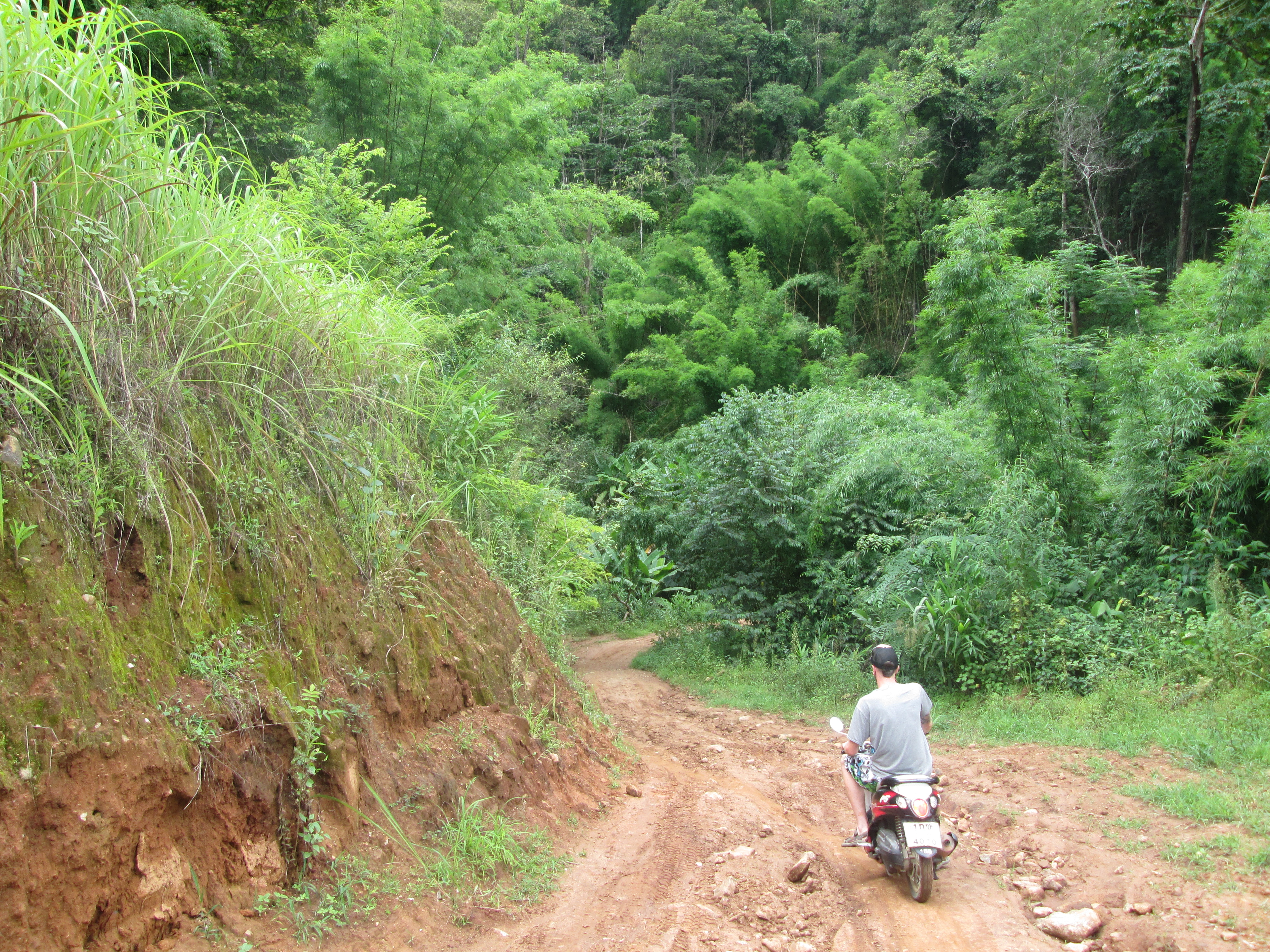 Aangekomen in het laidback stadje Pai, besluiten we om een scootertje te huren. Pai is een enorm knus plaatsje, maar erg klein, en met onze nieuwe gemotoriseerde vriend op twee wielen hebben we lekker de vrijheid om te gaan en te staan waar we maar willen. Het plan is om de omgeving buiten de stad eens goed te verkennen. Met zoveel jungle en bergen om ons heen willen wij wel eens zien wat voor moois daar allemaal te vinden is!