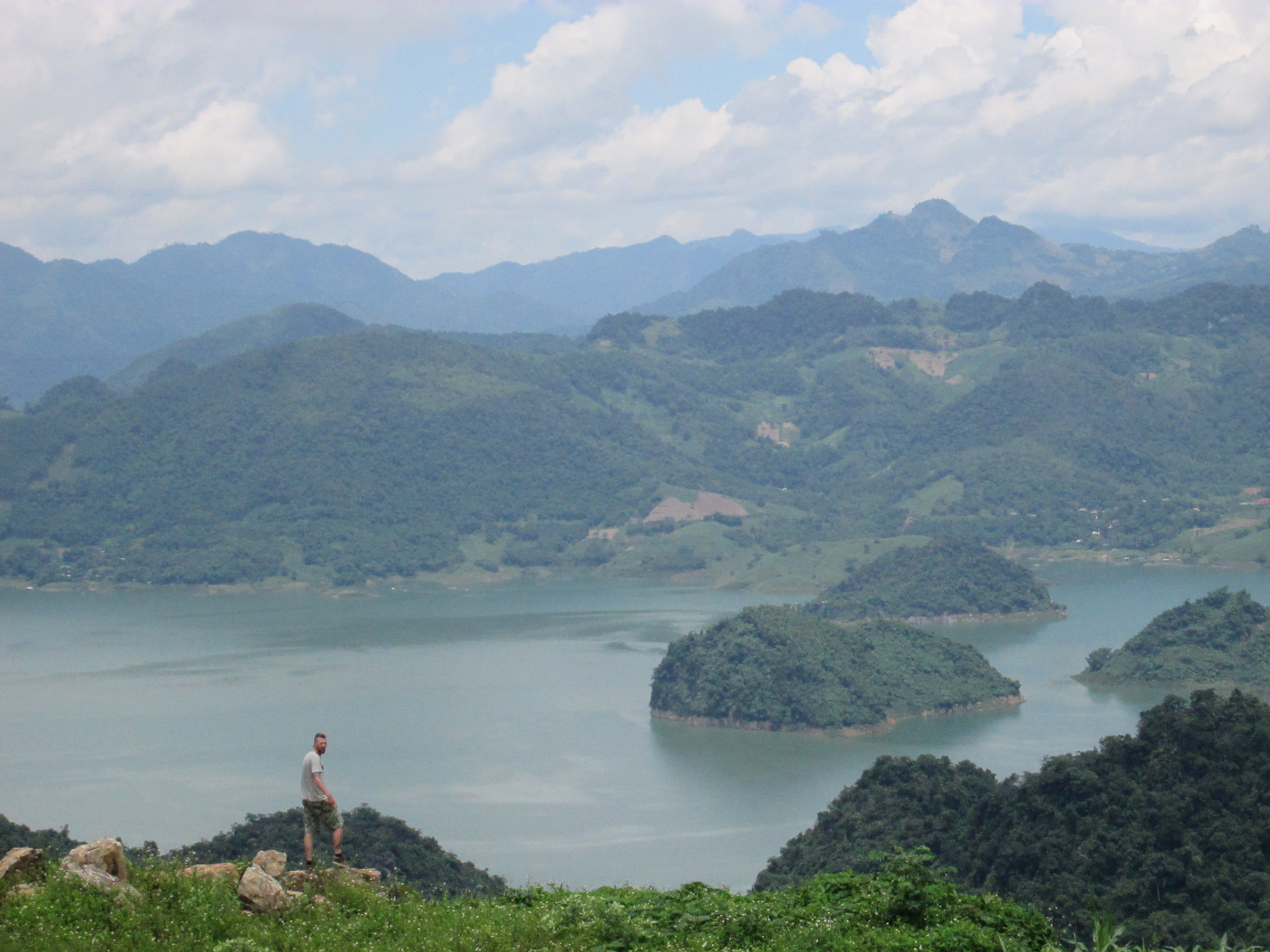 We hadden (eerlijk gezegd onbewust) direct al een hardcore route te pakken, aangezien we de snelweg al snel verlieten om een bergpas op te gaan, in de hoop een mooi uitzicht te vinden. Een bergpas met kleine onbekende wegen. En deze onbekende wegen die leiden naar… kleine onbekende bergdorpjes! Was Dennis in Hanoi (of de rest van Azië) al vaak een bezienswaardigheid, hier is hij werkelijk waar een attractie!! Het was vaak zijn lengte die de locals naar hem deden doen staren en niet eens zozeer zijn huidskleur, want op veel plekken is hij heus niet de eerste blanke die er ooit in het wild heeft rond gewandeld. Maar in de dorpjes die wij nu gepasseerd zijn komt er nooit, maar dan ook nooit een toerist. Lang leve de motorbike!