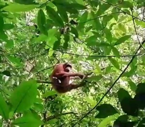 Het feit dat in Bukit Lawang de orang oetan zich dusdanig comfortabel op de grond begeeft, om op die manier zo dicht mogelijk bij de voedende hand van de mens te kunnen zijn, is uiteraard al een teken dat de diertjes niet meer wild zijn en hun “natuurlijke gedrag” al zijn verloren…